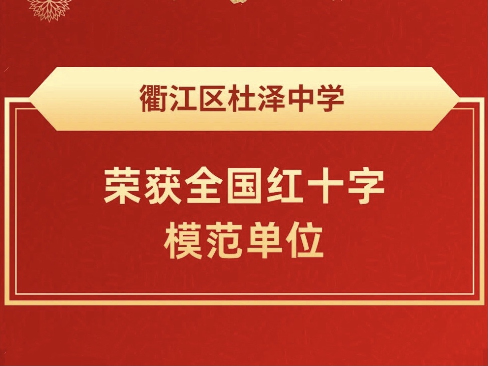 日前,中国红十字会总会发文表彰了368个“全国红十字模范单位”。衢江区杜泽中学荣获全国红十字模范单位,是衢州市唯一一个荣获红十字国字号奖的学校。